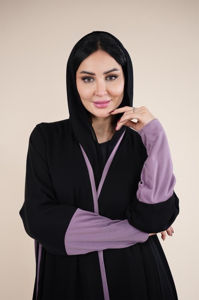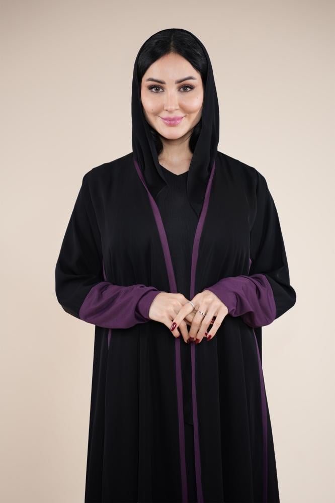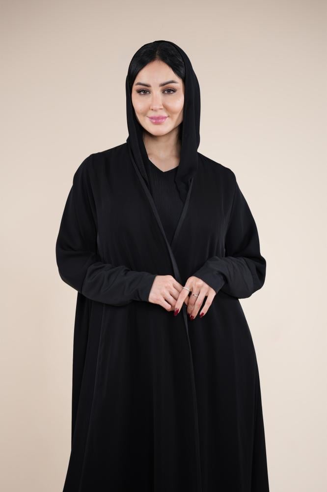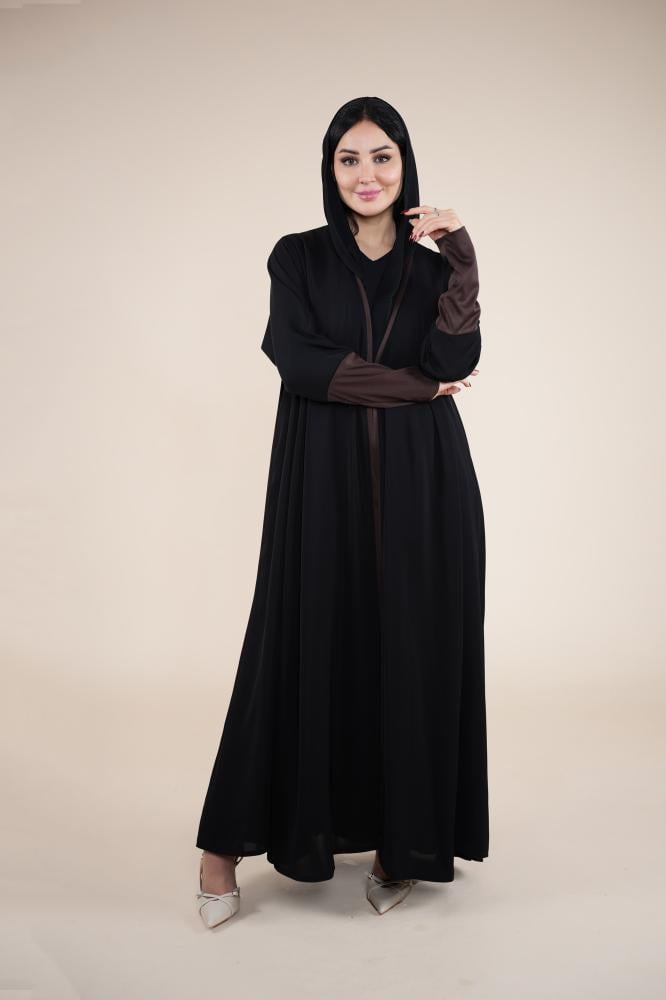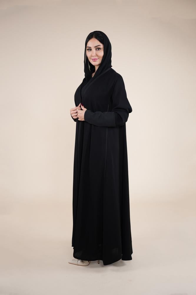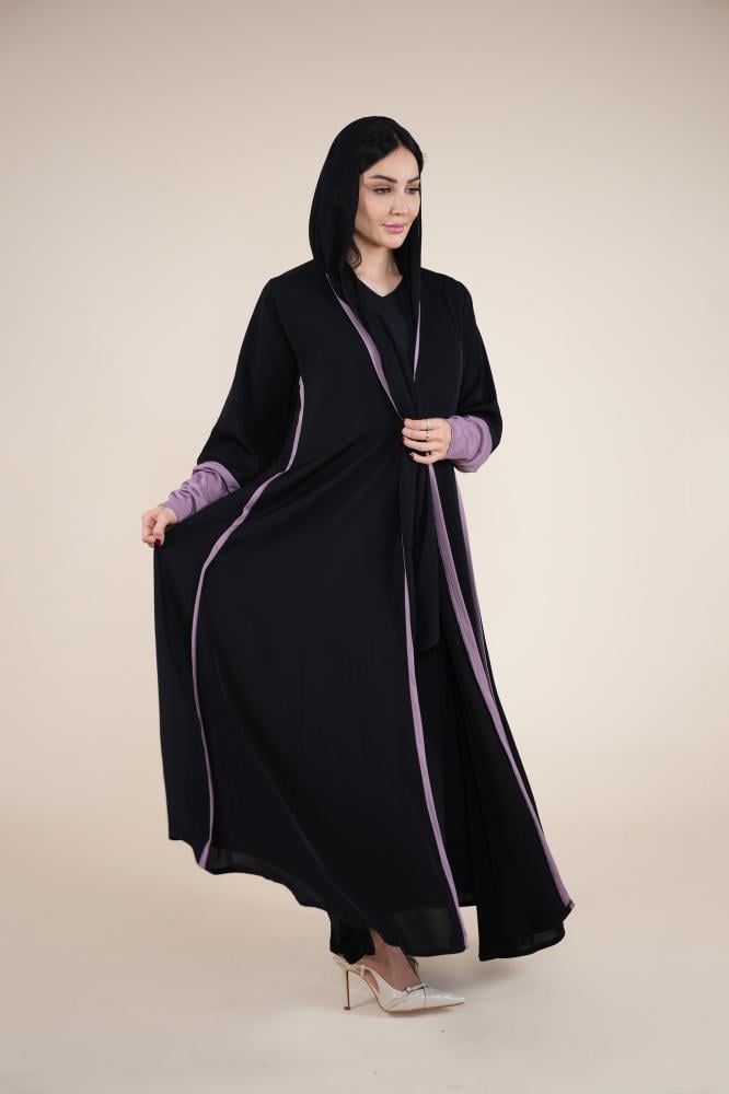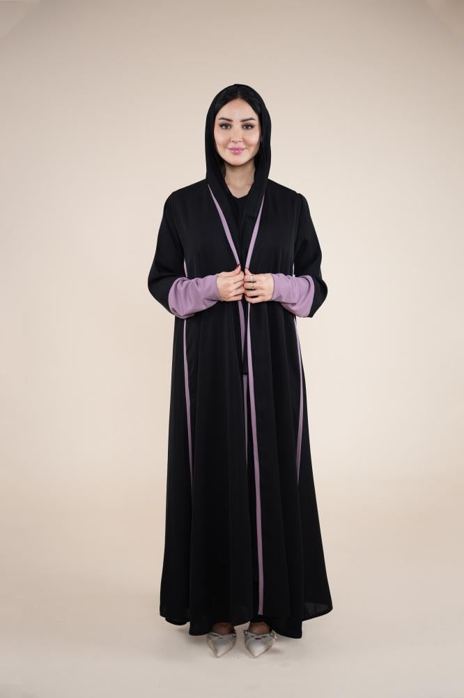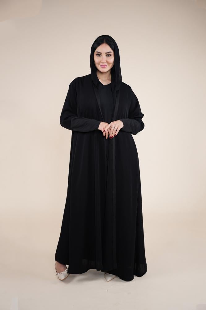 مواصفات العبايه : قماش انترنت مزين بقماش مطاط مع الاكمام ومن الامام وعلى الجوانب مع طرحه