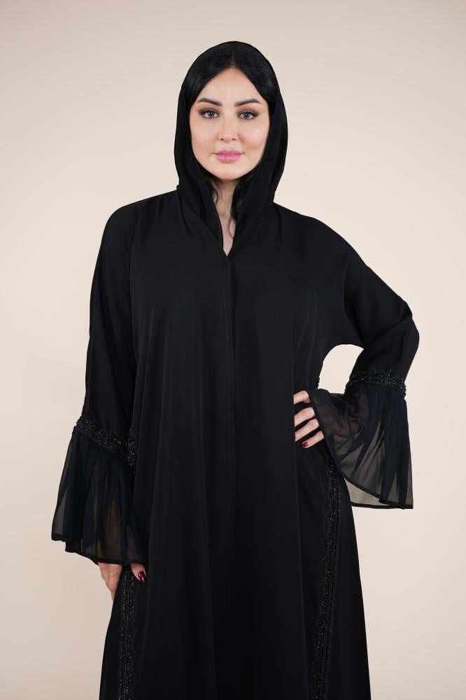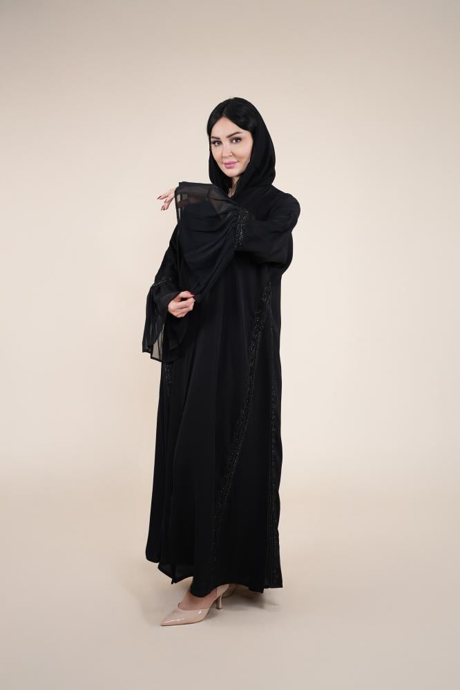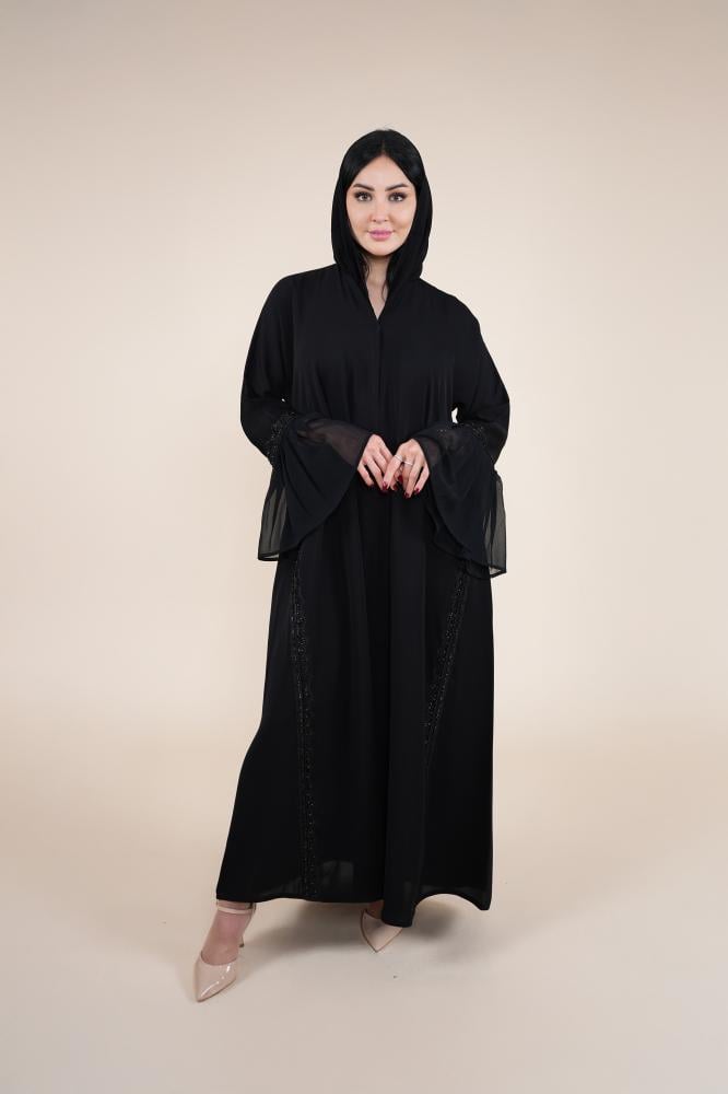 ارتدي الأناقة في أبهى صورها مع عباية نص كلوش بتصميم راقٍ يجمع بين الفخامة والبساطة.
