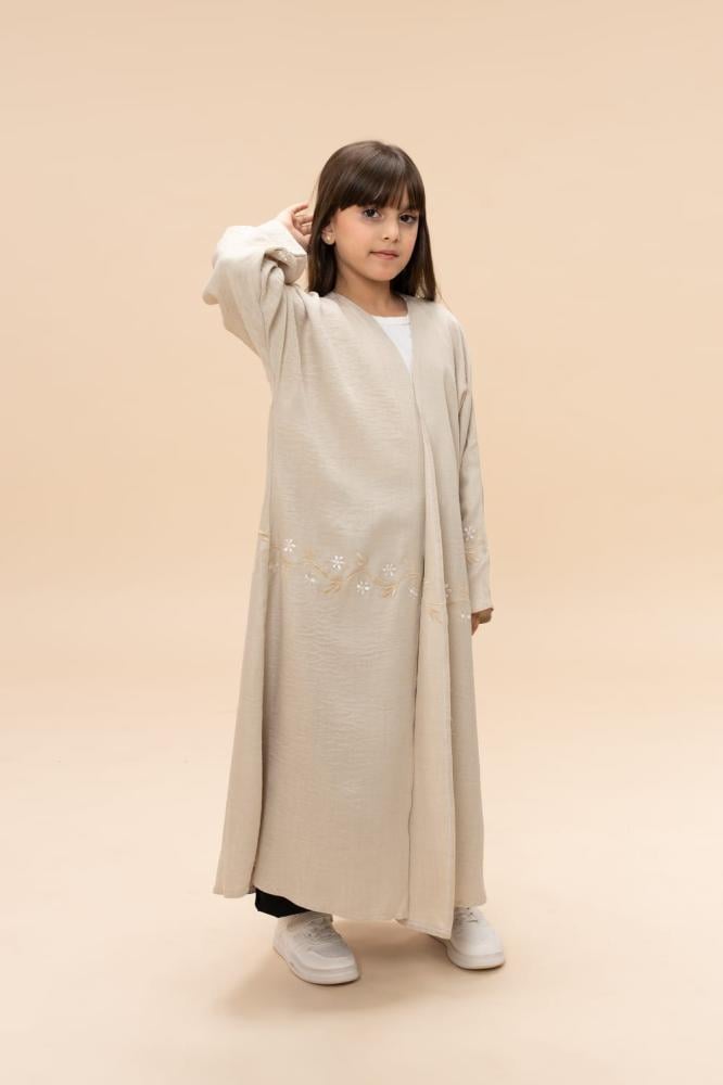 تأتي هذه العباية البناتي بتصميم صيفي عصري من قماش ليلس خفيف وناعم على البشرة، مع قصة "ستريت" تمنح مظهرًا أنيقًا وانسيابيًا في الوقت نفسه.