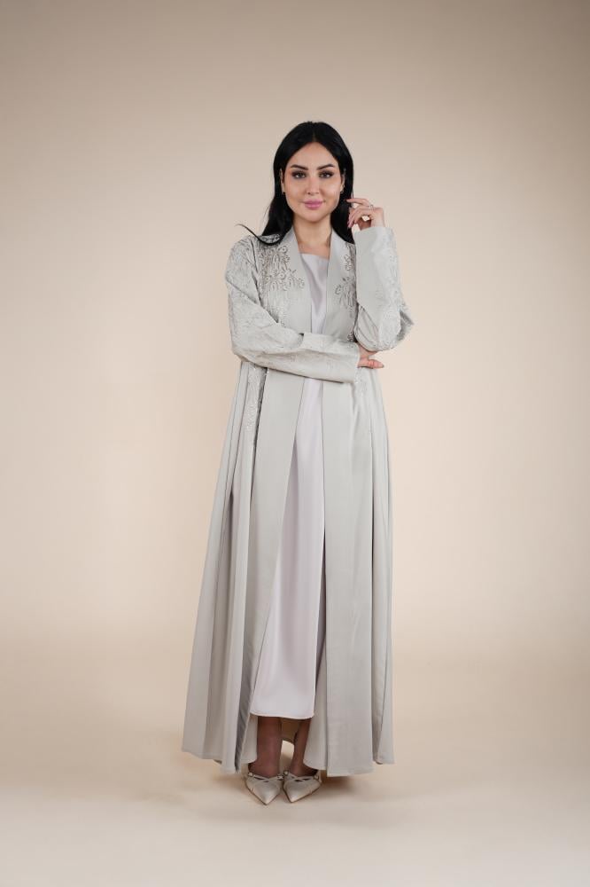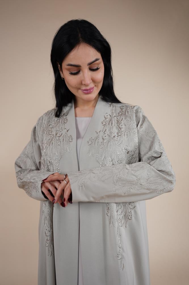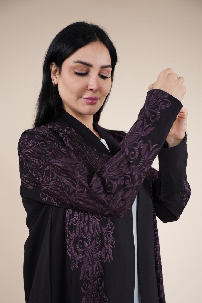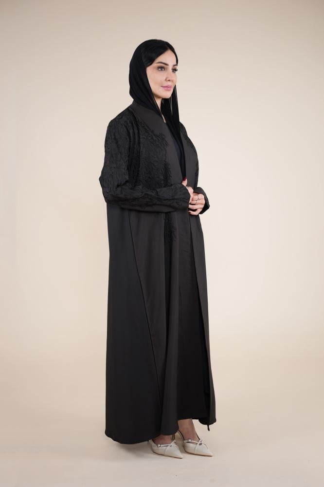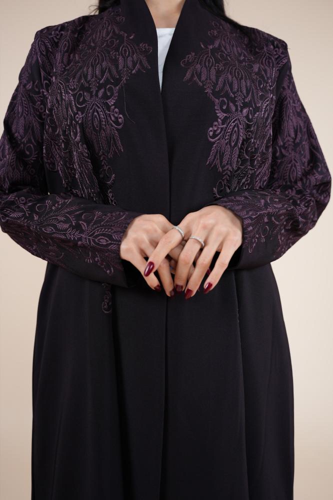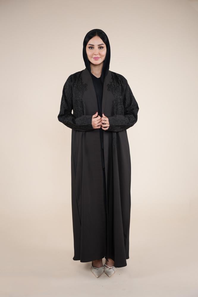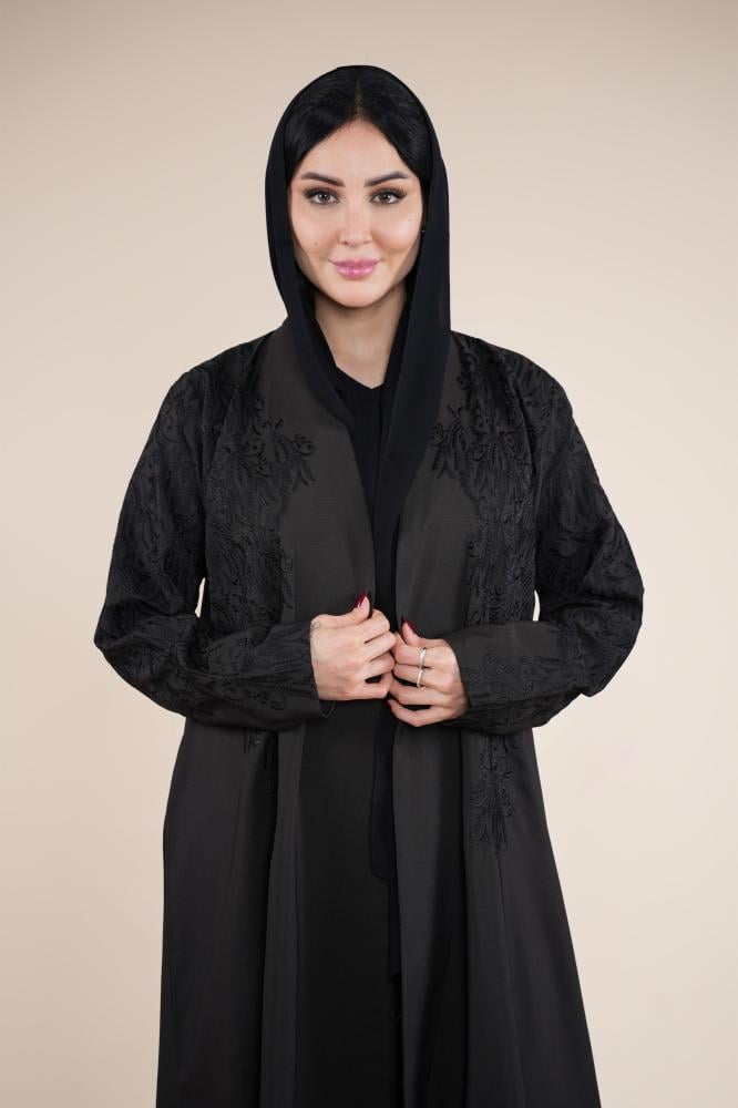 مواصفات العبايه : قماش كتان مطرز من الامام مع طرحه